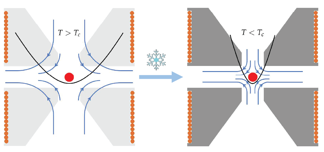 Using the power of the Meissner effect twice in one trap! Once to flux focus, once to levitate.
